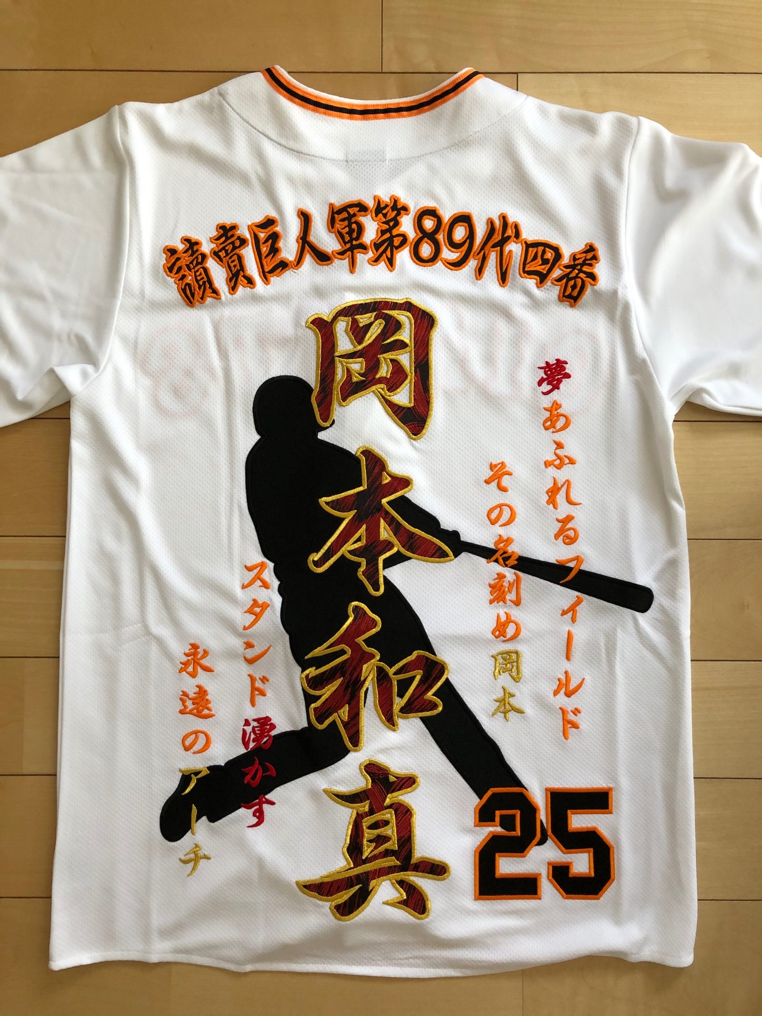 ジャイアンツユニフォームへの岡本選手の特大シルエット、応援歌、特大背ネーム等 [No.27821]