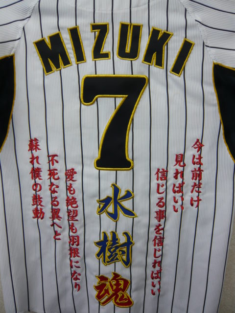ギャラリー・ お客様の声 真野ししゅうHOME > 製作実績 > ギャラリー(応援ユニ) > 阪神タイガース > 水樹奈々×阪神タイガース その2 水樹奈々×阪神タイガース その2 [No.2830] 2011年12月21日(水) 水樹奈々さんのユニ その2です。 野球の応援ユニ顔負けの、豪華な金の縁取り仕様です! カテゴリー:痛ユニ, 阪神タイガース タグ: 声優, 水樹奈々 注文・無料見積 このページを見た方は以下のページも見ています 水樹奈々×阪神タイガース その1 タイガースホームユニ×田所あずさ刺繍 関西の人気アイドルグループ! 水樹奈々さんスカジャン製作ご依頼のお客様から! 愛媛マンダリンパイレーツ×水樹奈々 水樹奈々×千葉ロッテマリーンズ!