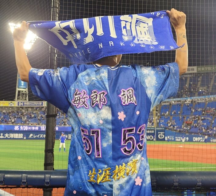 cleoさま リピートのご注文ありがとうございました🌟華やかでかっこいいユニフォームになりましたね😆💘ベイスターズ愛がこもっていて素敵なデザインになりました🎵観戦にも間に合って良かったです☺♪たくさんご着用いただけますと嬉しいです💙
