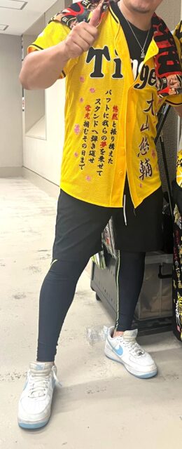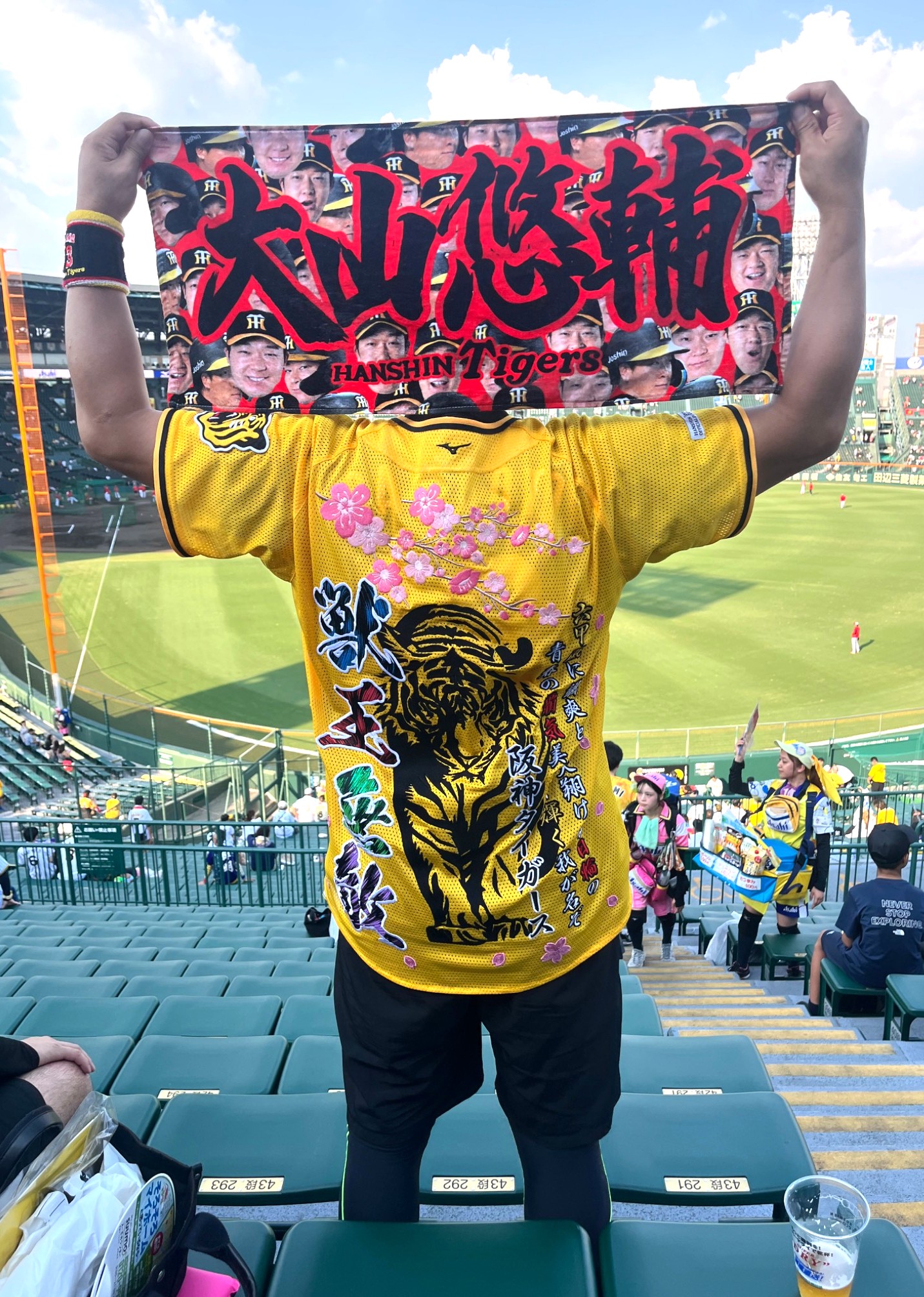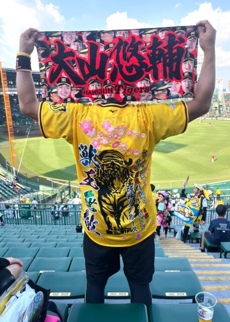 阪神タイガースさま ご注文ありがとうございました🐯🔥Ver2特大虎にしだれ桜、特大背ネームに縁ありの応援歌を加工した気合の入った一着になりましたね😆💛「獣王無敵」の文字もシャイン生地を色替えして更に派手に、かっこよくなりました😍