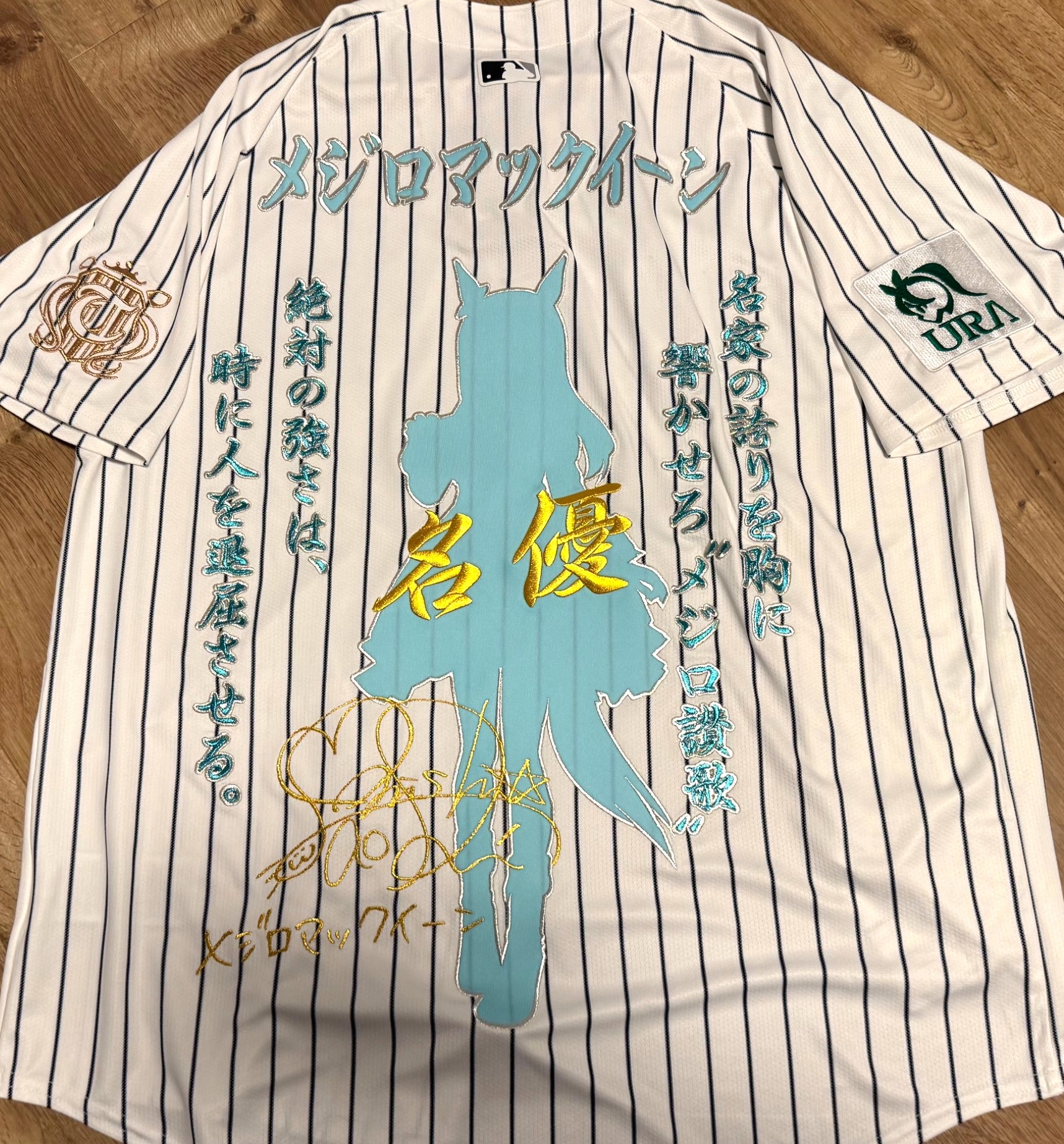 メジロマックイーンのcv.大西沙織さんのサインも大きく刺繍していただいたところも自慢ポイントです。