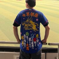 UZUMAKIの龍をメインにして周りのデザインを考えました。 稲妻はセリーグの他球団のチームカラーにして、相手からの鋭い攻撃をも跳ね返すような強いドラゴンズであってほしいという想いを込めています。 色は、燃えよドラゴンズに出てくる順に左から並べていただきました。 前面の Made in Mano のワッペンもこだわりポイントです。