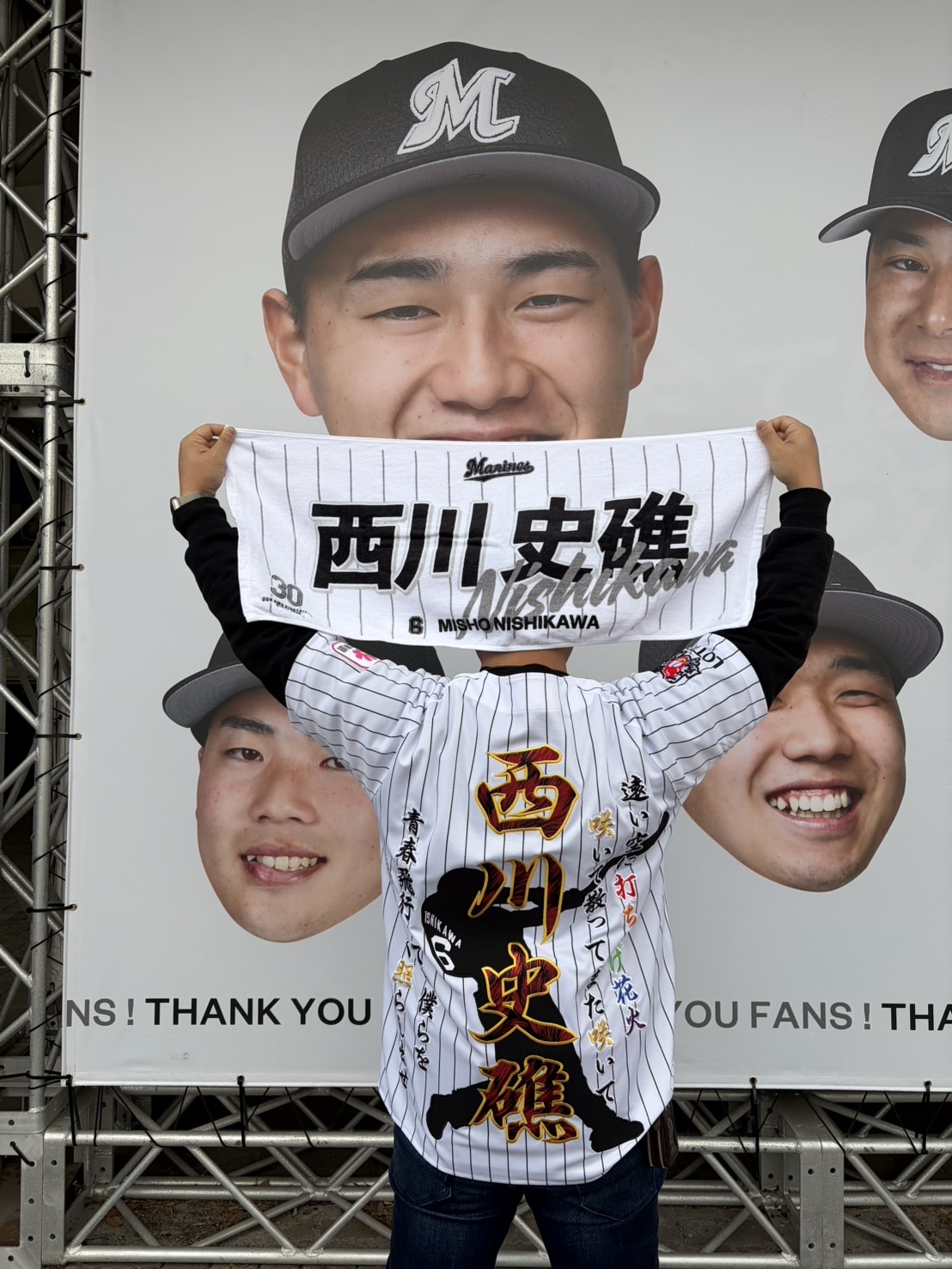 千葉ロッテマリーンズユニフォームの西川選手応援加工 [No.37238]