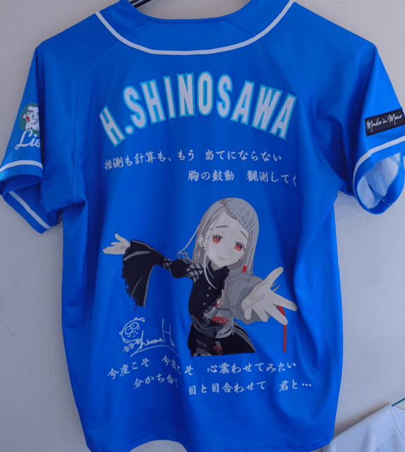 fuji22さま いつもご利用ありがとうございます😄今回もこだわりの詰まった素敵なユニフォームになりましたね✨キャラクターのミステリアスな雰囲気も刺繍で表現できました🎵痛ユニで推し活がさらに楽しいものになると嬉しいです😆🎤またのご利用お待ちしております🌟