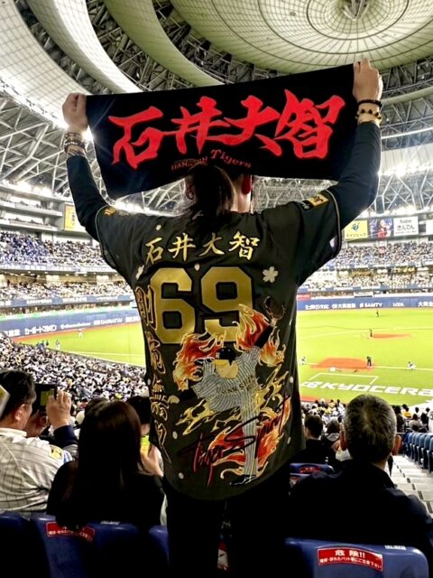 ANNさま リピートのご注文ありがとうございます🌟躍動感あるリアル刺繍に炎がまとった気合が感じられる一着になりましたね🔥立体感あるデザインで今にも飛び出してきそうです⚾🎵球場からのかっこいいお写真ありがとうございました🌟またのご利用お待ちしております😆